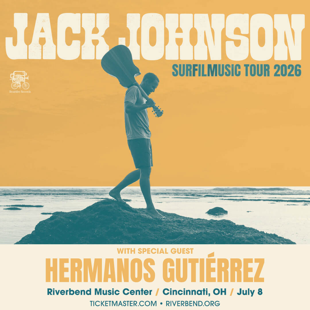 Multi-platinum recording artist Jack Johnson announces SURFILMUSIC Tour, a 43-date North American tour that will take Johnson and his band coast-to-coast next year. The tour marks Johnson’s long-awaited return to the road since 2022 and will celebrate a new era of music, film, and environmental connection rooted in his chart-topping catalogue, spanning over twenty years. The tour will make a stop in Cincinnati, OH at Riverbend Music Center on Wednesday, July 8. Hermanos Gutiérrez will join as support.