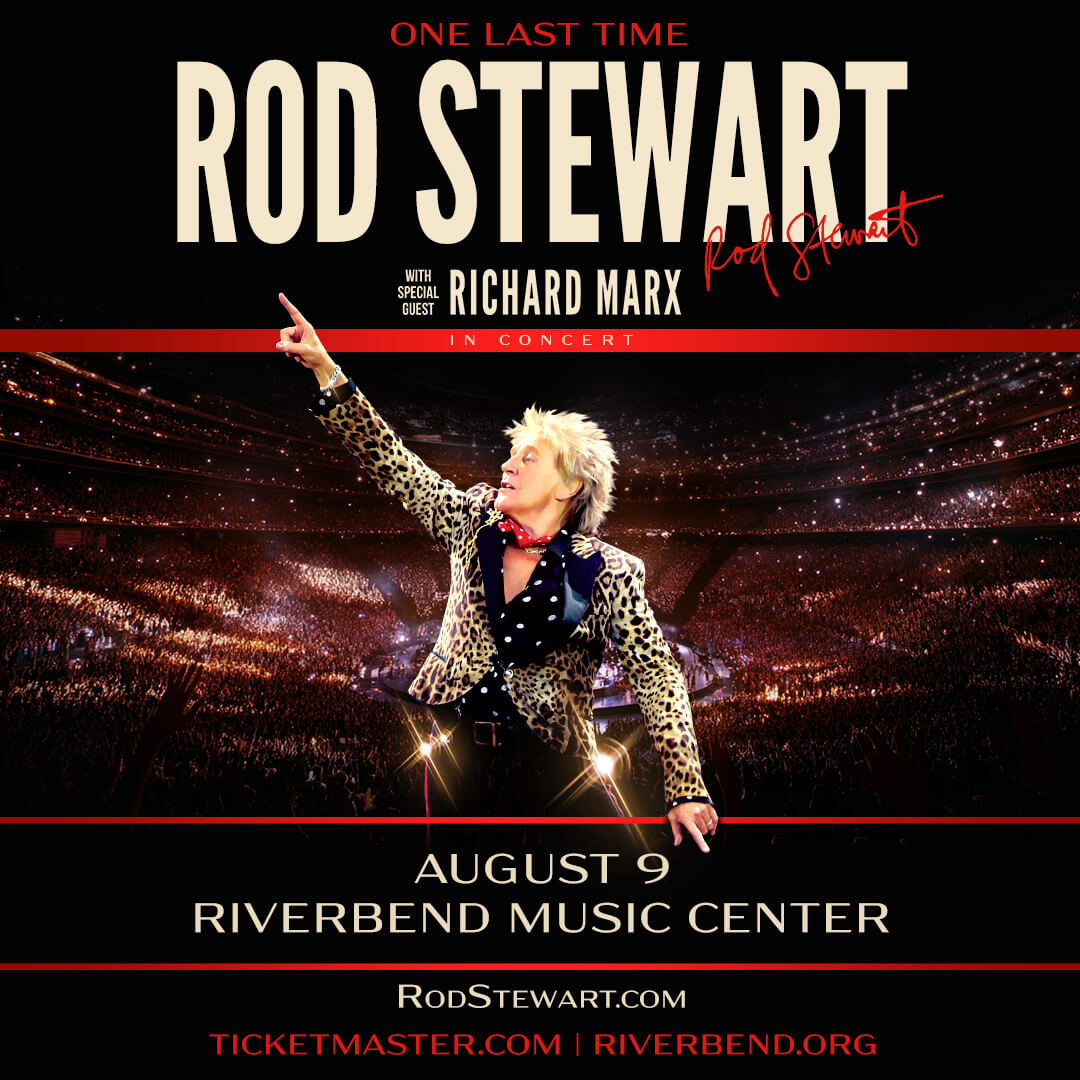 Two-time Rock n' Roll Hall of Fame icon Rod Stewart today announces the extension of his highly successful “One Last Time” tour in 2026. The newly added dates kick off in March and will include a stop in Cincinnati, OH at Riverbend Music Center on Sunday, August 9. Richard Marx will join as special guest.